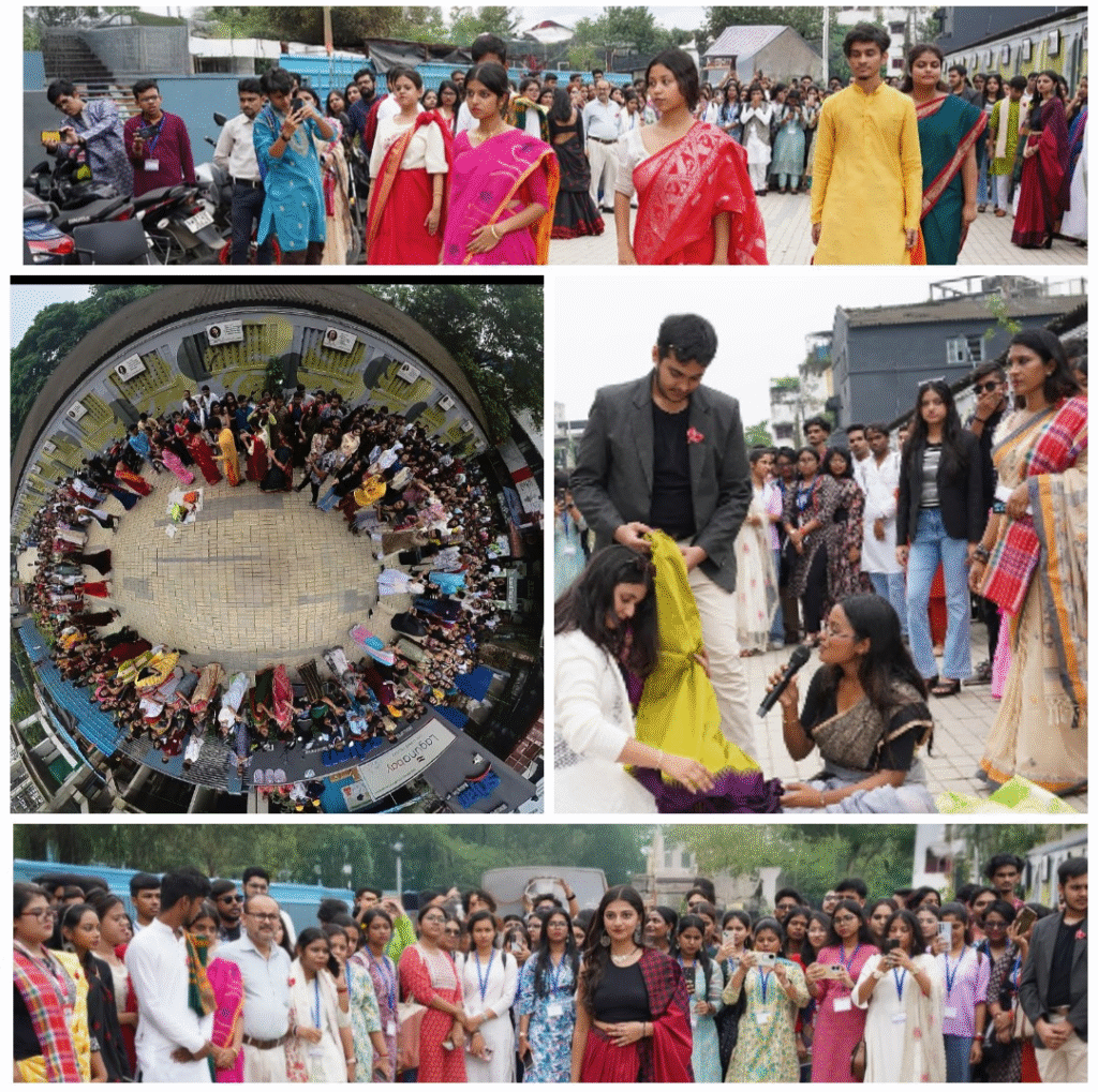 - प्रदर्शनी-सह-बिक्री: स्थानीय बंगाल के बुनकरों ने उत्कृष्ट हथकरघा उत्पादों का प्रदर्शन और विक्रय किया, जिसे ज़बरदस्त प्रतिक्रिया मिली। इस शानदार सफलता ने नई पीढ़ी को भारत की हथकरघा परंपराओं को महत्व देने और उनका समर्थन करने के लिए प्रेरित किया। टिकाऊ फ़ैशन के लिए प्रतिबद्ध एक संस्थान के रूप में, हम सभी से आग्रह करते हैं: